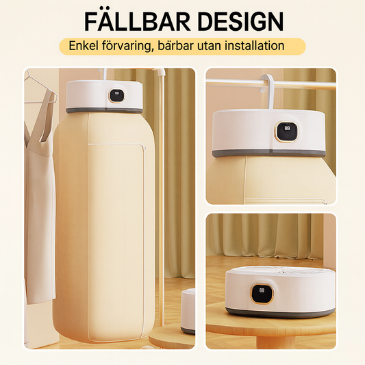 Vikbar portabel klädtork med 360° varmluft och tyst drift
