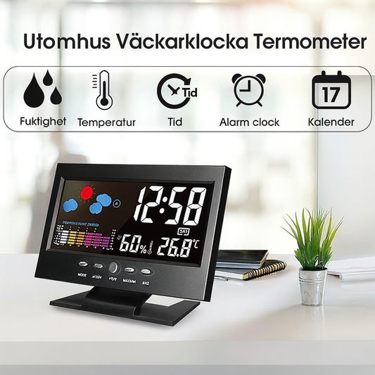 Digital väderstation med temperatur fuktighet och tidsvisning