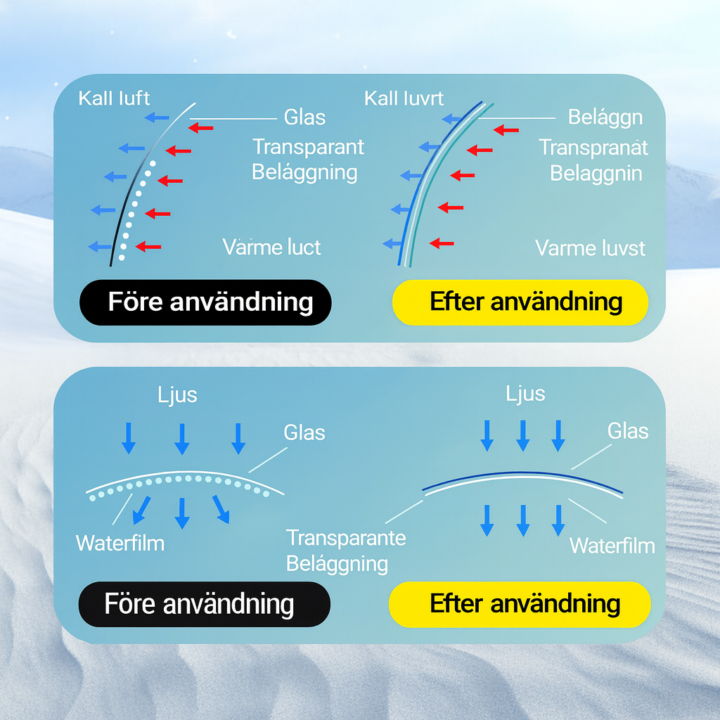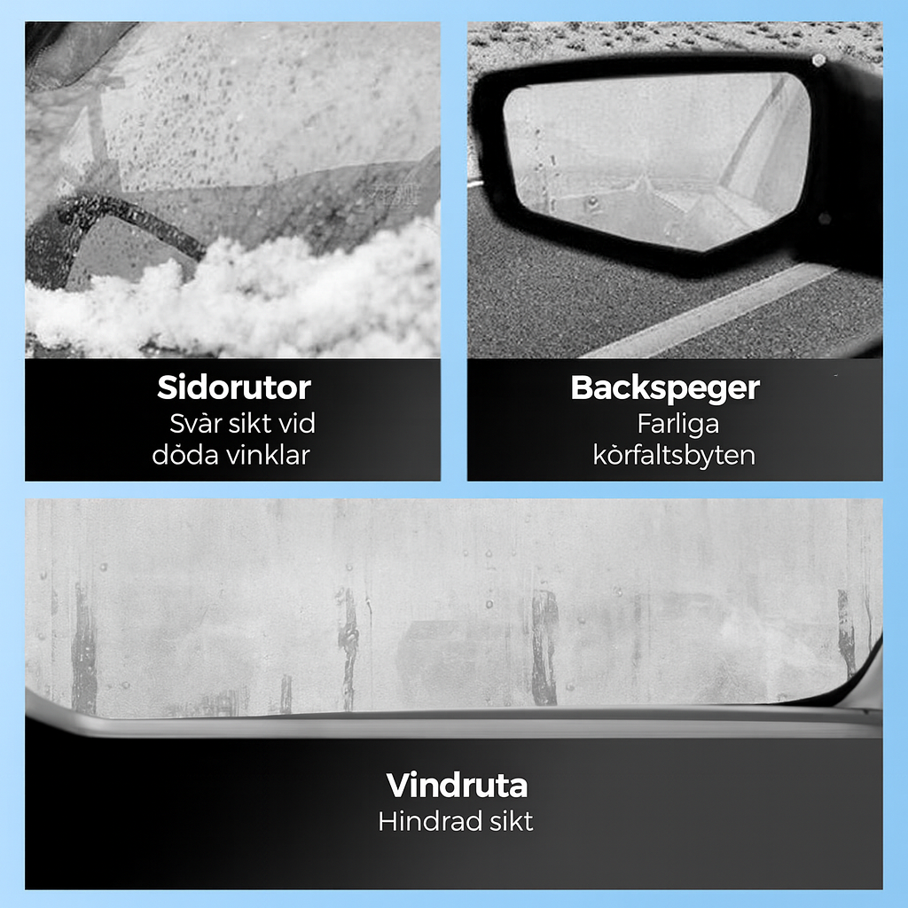 Speciellt framtagen för sidorutor, backspeglar och vindrutor – förhindrar effektivt imma och ger ökad säkerhet i trafiken. Perfekt under kalla, regniga eller snöiga dagar då sikten annars blir suddig.