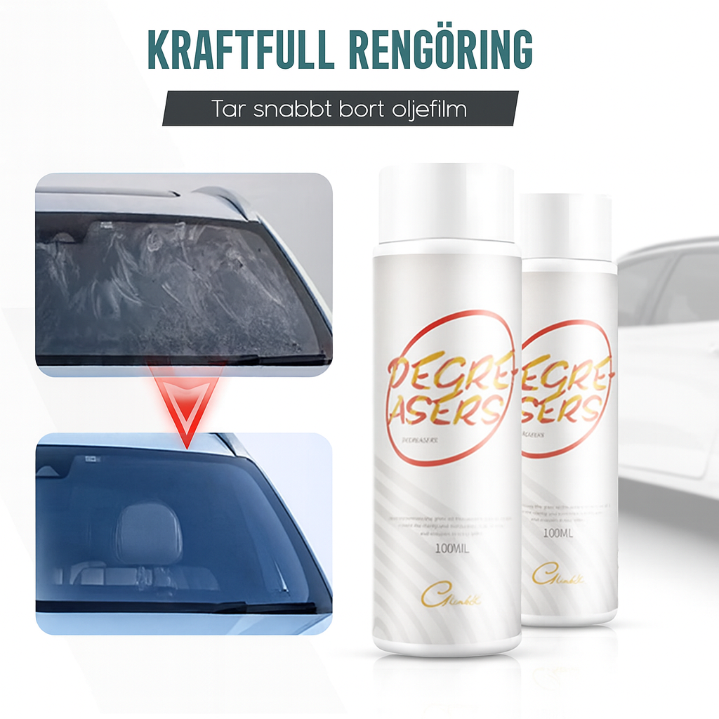 Denna effektiva glasrengörare löser upp och tar bort även den mest inbitna olje- och fettfilmen från bilrutor, vilket gör vindrutan klar och genomskinlig igen. Resultatet är bättre sikt och säkrare körning i alla väderförhållanden – både dag och natt.