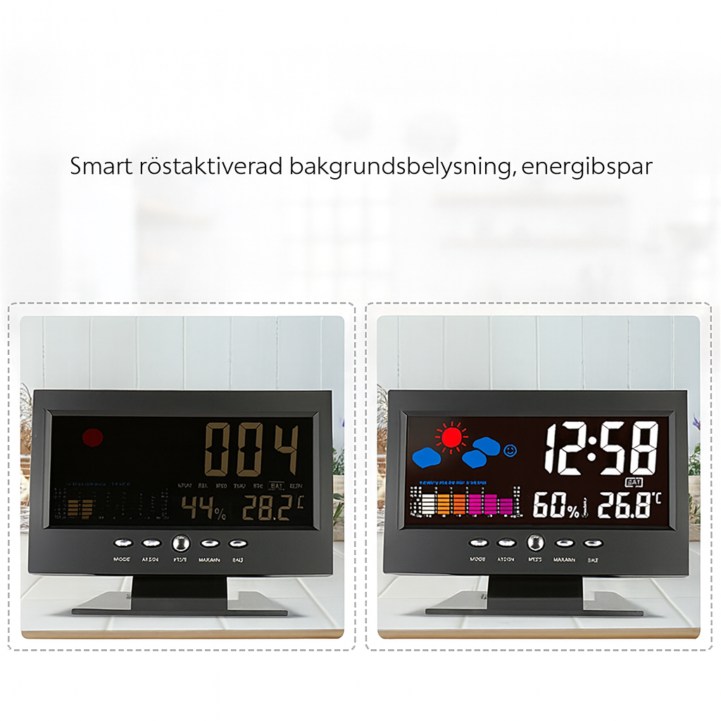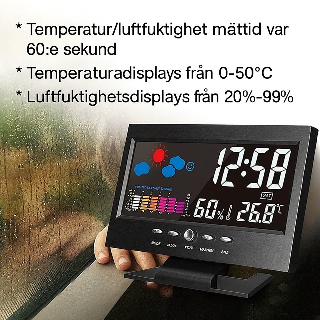 Digital väderstation med temperatur fuktighet och tidsvisning