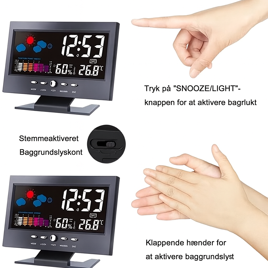 Blijf altijd op de hoogte van het binnenklimaat met dit multifunctionele digitale weerstation. Het combineert temperatuur- en vochtigheidsmeting, klokweergave en weersvoorspelling in één compact ontwerp. Dankzij de ingebouwde sensoren meet het apparaat nauwkeurig de binnentemperatuur en vochtigheid en analyseert het deze om de weersverwachting te tonen. Ideaal voor thuis, kantoor of slaapkamer.