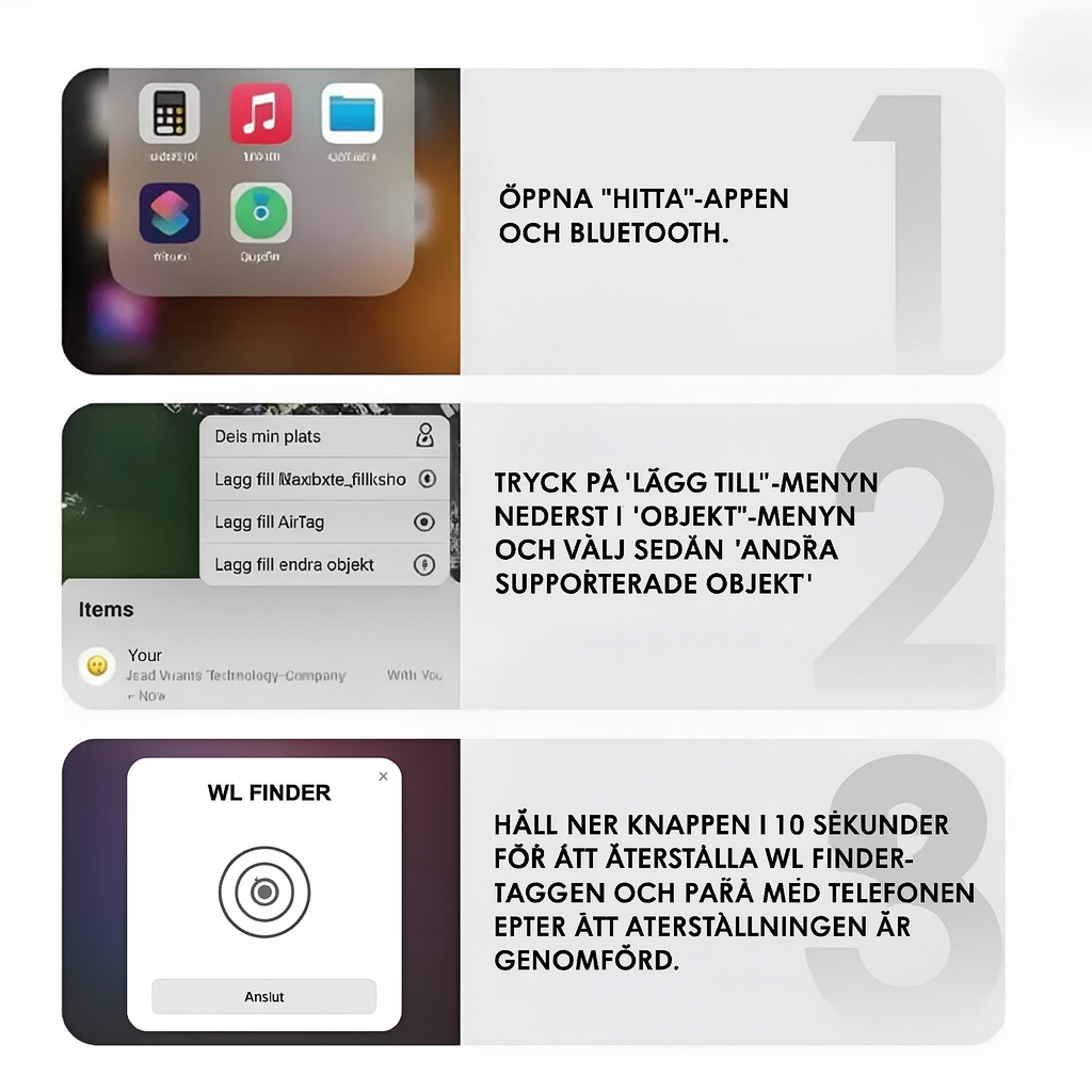 Med sin magnetiska fäste sitter trackern stadigt på alla metalliska ytor, även på skakiga vägar. Via Find My-appen kan du följa rörelser i realtid och få exakta platsuppdateringar direkt i mobilen – för säkerhet och sinnesro var du än är.