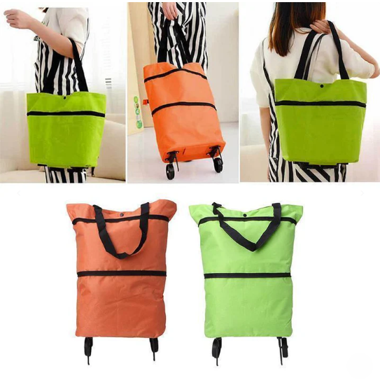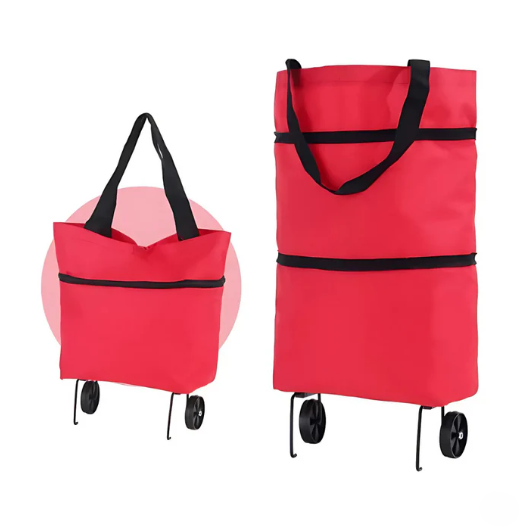 Hopfällbar Shoppingväska med Dolda Hjul & Stor Kapacitet