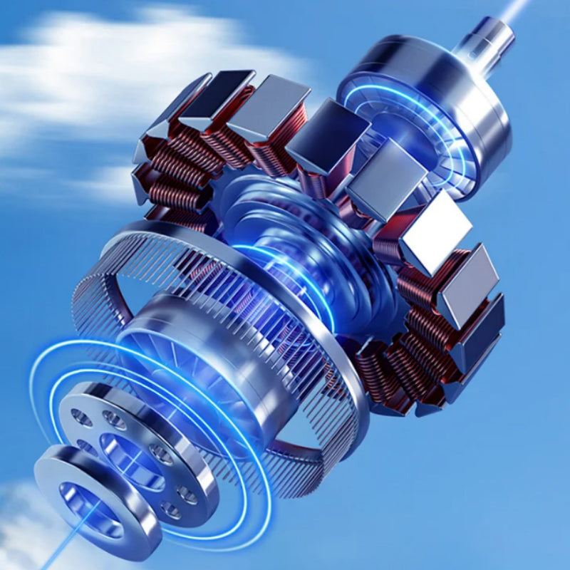 Rakapparaten har en avtagbar rakhuvuddesign som enkelt kan sköljas under vatten (IPX6 vattentät) för snabb rengöring. Den ergonomiska formen gör den bekväm att hålla och ger precision vid varje drag.