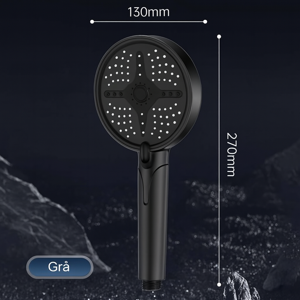 Denna multifunktionella sprutmunstycksdusch kombinerar kraftfullt tryck, behagligt vattenflöde och fem olika spraylägen – från mjuk mist till kraftfull massage. Den extra stora panelen ger en uppslukande duschupplevelse, även vid lågt vattentryck.