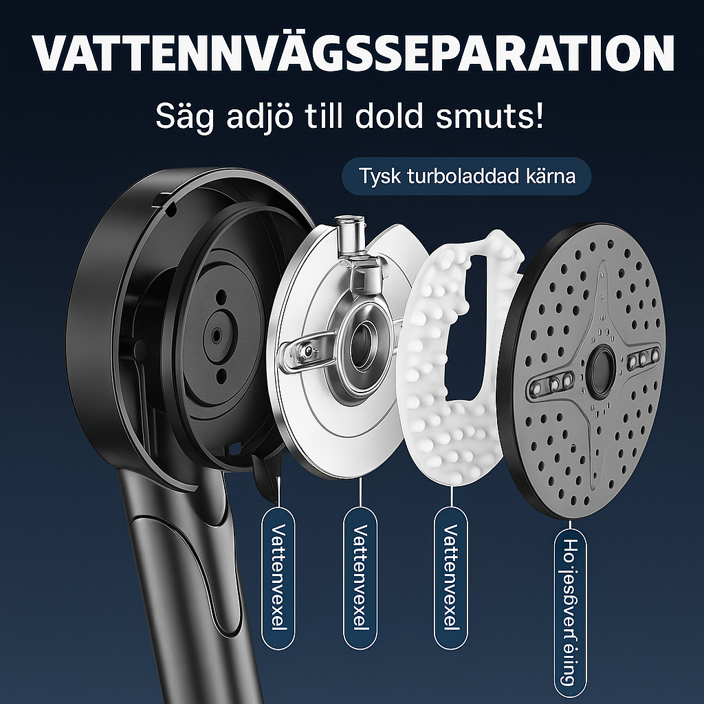 Med en innovativ separerad vattenkanalkonstruktion undviks bakterietillväxt och dolda smutsfläckar. De 0,7 mm munstyckena av livsmedelsklassad silikon ger ett mjukt, spa-liknande vattenflöde som är perfekt för barn och känslig hud. Dessutom är designen blockeringsfri och enkel att rengöra.