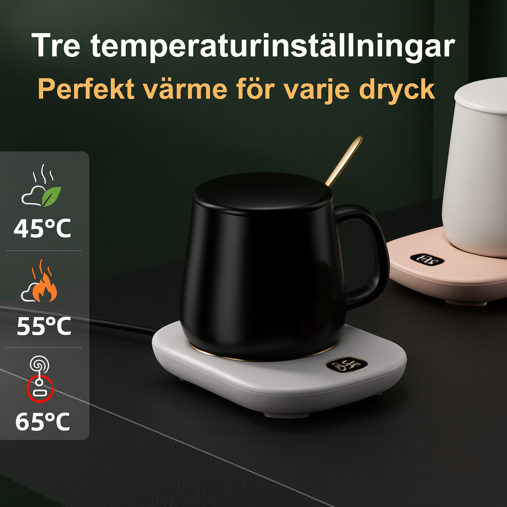 Njut av din varma dryck i timmar med total sinnesro. Det inbyggda smarta chippet för temperaturkontroll förhindrar överhettning och säkerställer en säker och pålitlig drift. Det är den perfekta lösningen för att hålla kaffet varmt på kontoret eller teet mysigt hemma.