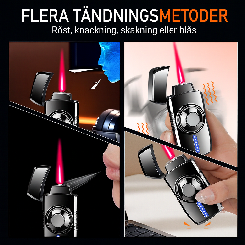 Med röststyrning, beröring, skakning eller pusten kan du tända på det sätt som passar bäst. Den vindbeständiga lågan ger trygg användning även vid utomhusaktiviteter eller nödsituationer, så du slipper bekymmer med vanliga tändare.