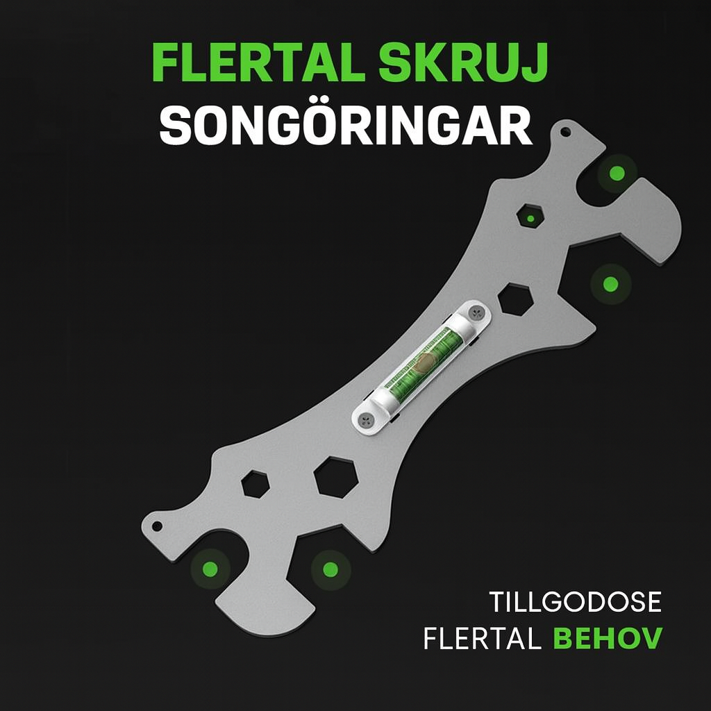 Universell multinyckel i rostfritt stål med vattenpass och mätningsfunktion