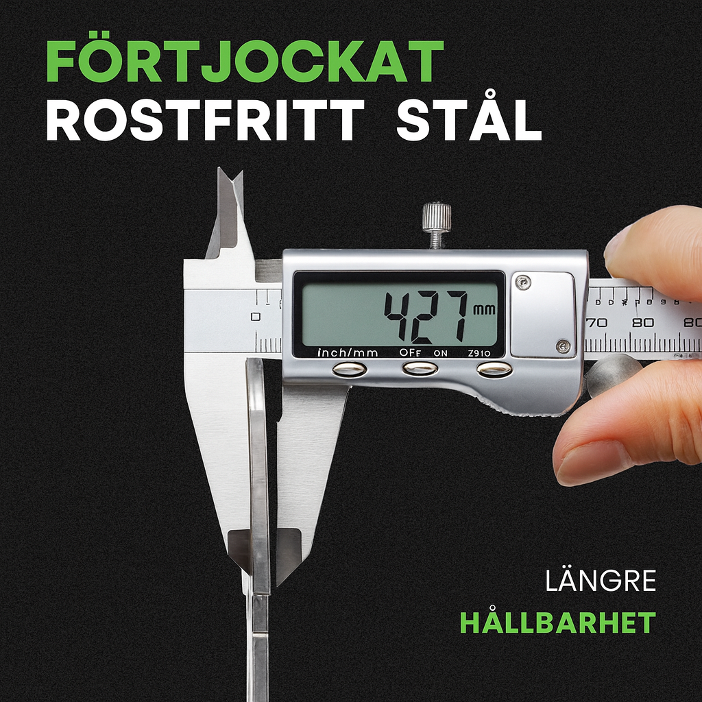 Stark, rostfri och hållbarDen förstärkta konstruktionen i rostfritt stål ger ett stabilt grepp, motstår deformation och håller sig rostfri även vid långvarig användning. Den solida designen garanterar lång livslängd och konsekvent prestanda, även under krävande förhållanden.