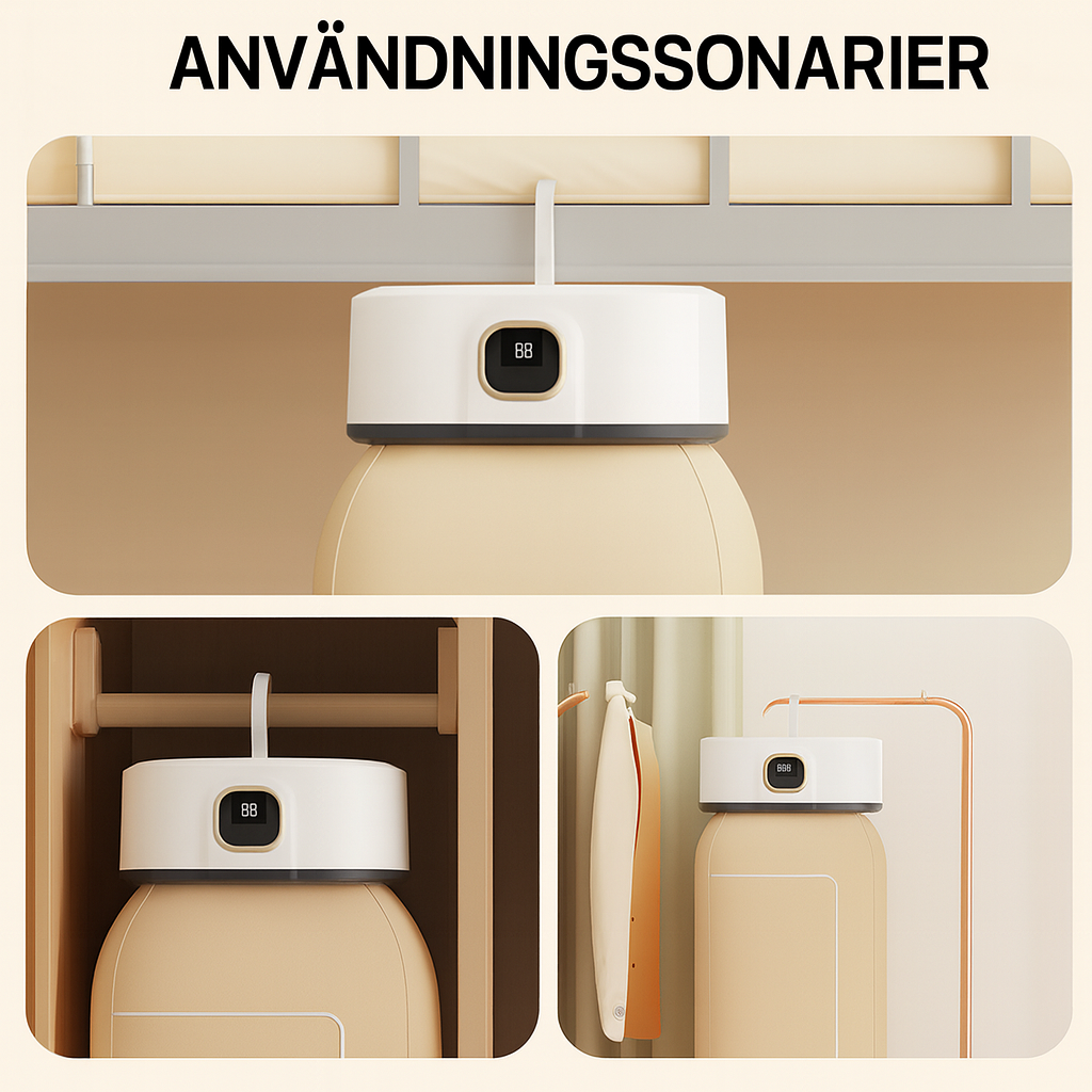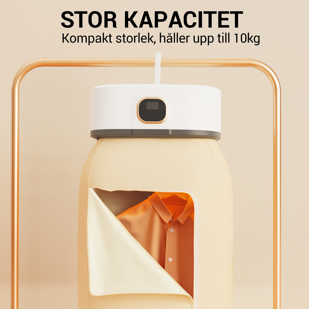 Den bärbara vikbara minitorken är utformad för maximal bekvämlighet och kan enkelt fällas ihop till ett kompakt format för smidig förvaring eller transport. Ingen installation krävs – perfekt för lägenheter, studentrum, resor eller små utrymmen. Den smarta konstruktionen gör den redo att användas direkt när du behöver snabb och effektiv torkning.